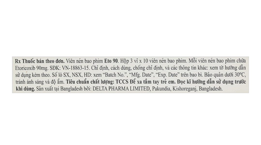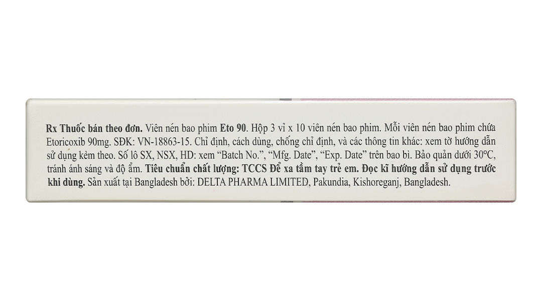 Eto 90 trị các triệu chứng viêm xương khớp cấp và mãn tính (3 vỉ x 10 viên)