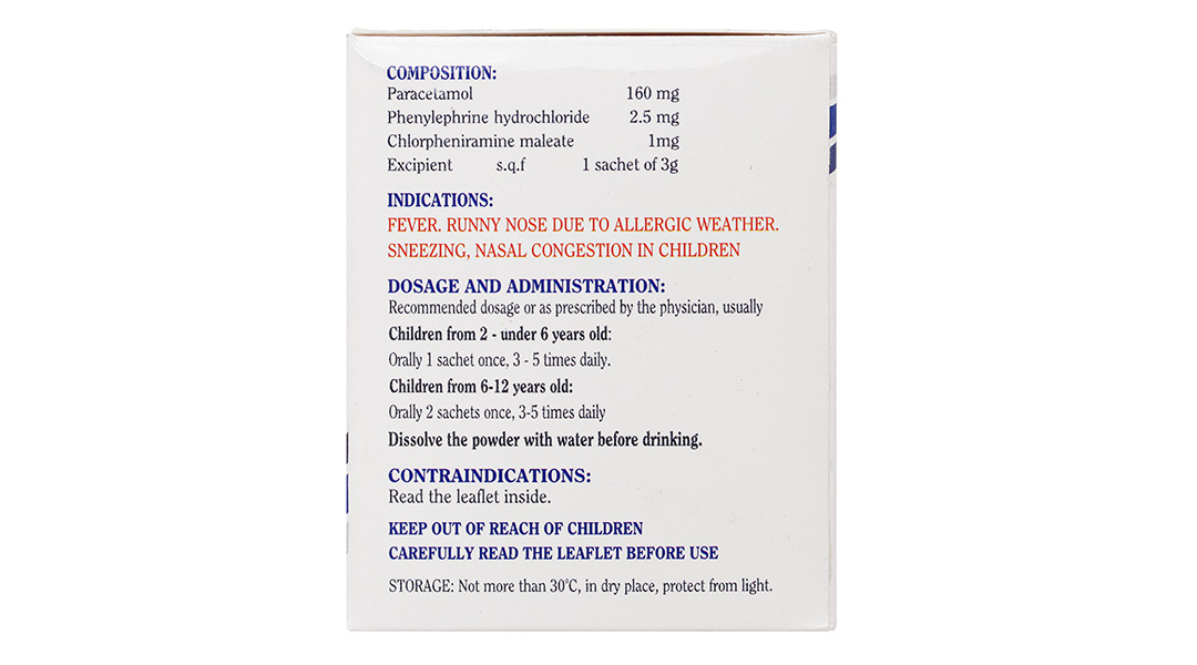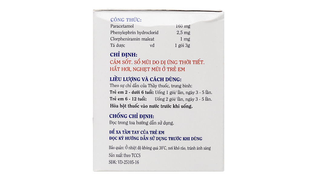 Cách dùng: Hòa bột thuốc vào nước trước khi uống.