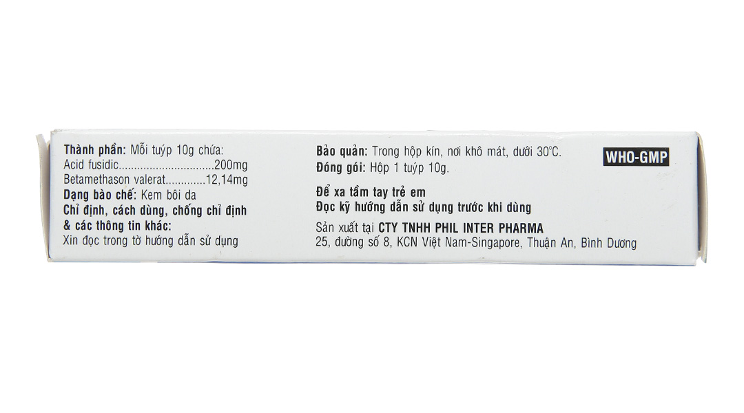 - Sự kháng thuốc của vi khuẩn đã được báo cáo khi dùng tại chỗ acid fusidic. Cũng như tất cả các kháng sinh, dùng acid fusidic định kỳ hoặc kéo dài có thể làm tăng nguy cơ phát triển vi khuẩn kháng thuốc. Giới hạn điều trị acid fusidic và betamethason valerat dùng tại chỗ không quá 14 ngày 1 đợt sẽ giảm đến mức tối thiểu nguy cơ phát triển vi khuẩn kháng thuốc.