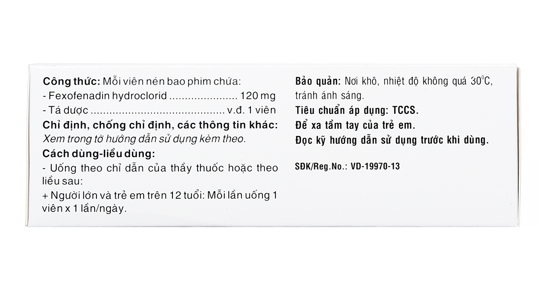 Hoạt chất: Fexofenadin hydrochlorid 120mg.