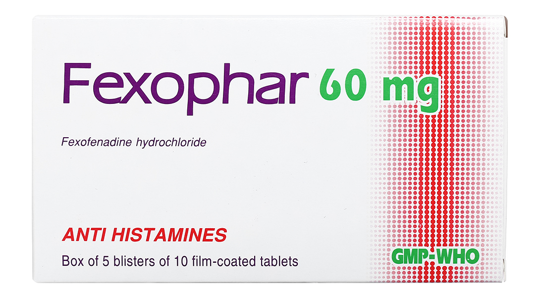- Dược chất: Fexofenadin hydroclorid hàm lượng 60mg.