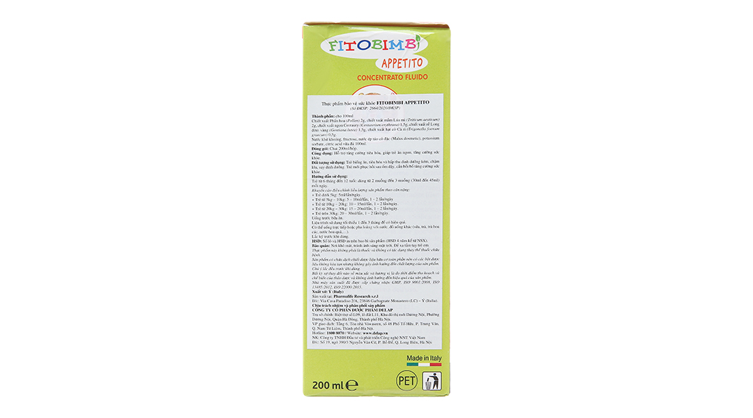 - Fitobimbi Appetito được sản xuất bởi Pharmalife Research – công ty Dược phẩm hàng đầu tại Ý và châu Âu, tạo ra các sản phẩm thảo dược an toàn hiệu quả, chăm sóc và bảo vệ sức khỏe cho trẻ.