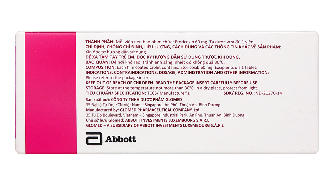 FLEXIDRON 60 có dạng viên nén bao phim dùng để uống chứa 60mg etoricoxib.