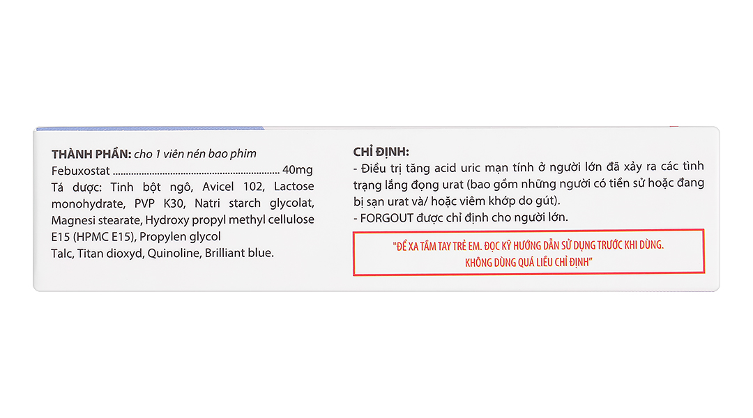 Forgout trị tăng Acid Uric mạn tính, viêm khớp do gút (2 vỉ x 15 viên)