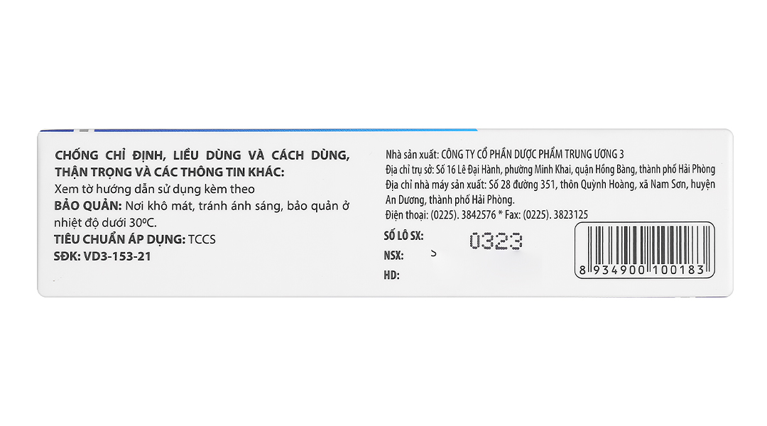 Nhà sản xuấtCông ty cổ phần Dược phẩm Trung Ương 3