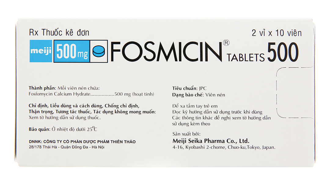 - Hoạt chất: Fosfomycin calci hydrate 500mg.