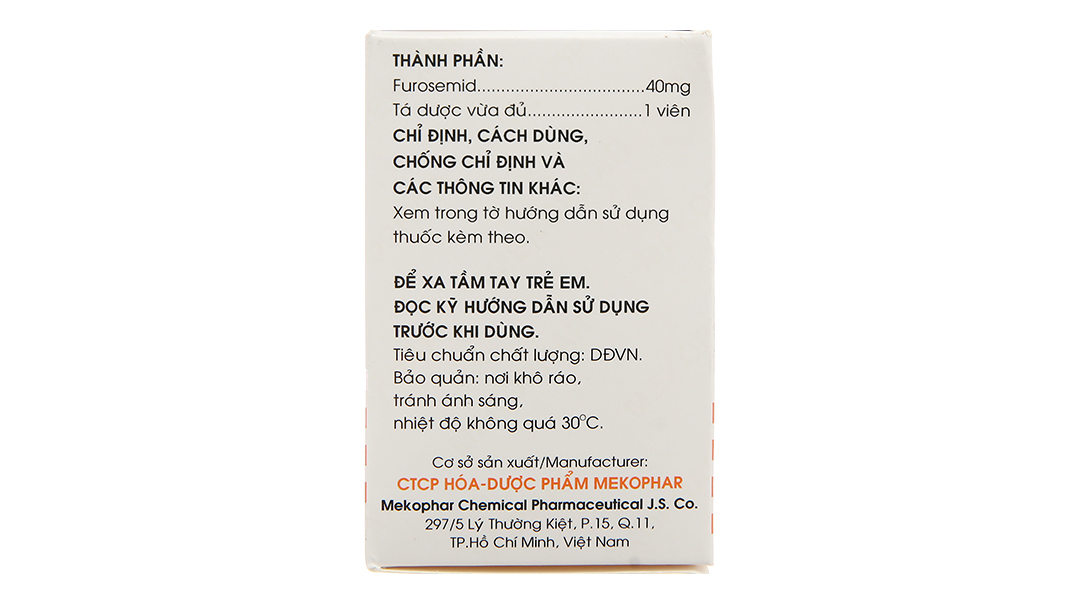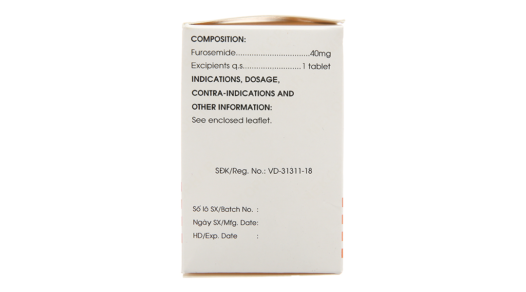Furosemide hấp thu tốt qua đường uống. Sự hấp thu của Furosemide có thể kéo dài và có thể giảm bởi thức ăn. Lượng thuốc hấp thu được thải chủ yếu qua thận, phần còn lại thải trừ qua phân, thuốc thải trừ hoàn toàn trong vòng 24 giờ.