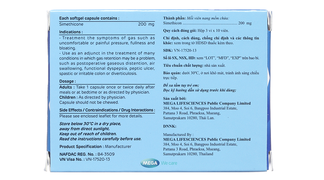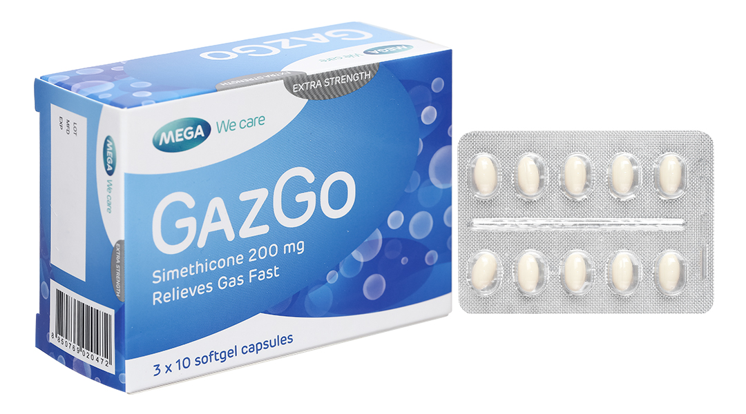 Gazgo 200mg điều trị các triệu chứng liên quan đến tích tụ hơi (ở vùng dạ dày ruột) như là khó chịu hoặc căng đau, trướng bụng và đầy hơi.