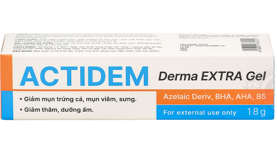 - Actidem Derma Extra Gel là sản phẩm chăm sóc da chuyên biệt của thương hiệu Actidem – một thương hiệu dược mỹ phẩm nổi tiếng, chuyên về các giải pháp điều trị da mụn, được các chuyên gia da liễu đánh giá cao về chất lượng. Sản phẩm này được phát triển nhằm hỗ trợ điều trị các vấn đề da như mụn, viêm da, kích ứng và các tổn thương da nhẹ, nhờ vào các thành phần có tác dụng kiểm soát lượng dầu trên da, làm dịu da, hỗ trợ làm sáng da, giúp điều tiết bã nhờn, ngăn ngừa mụn hiệu quả.