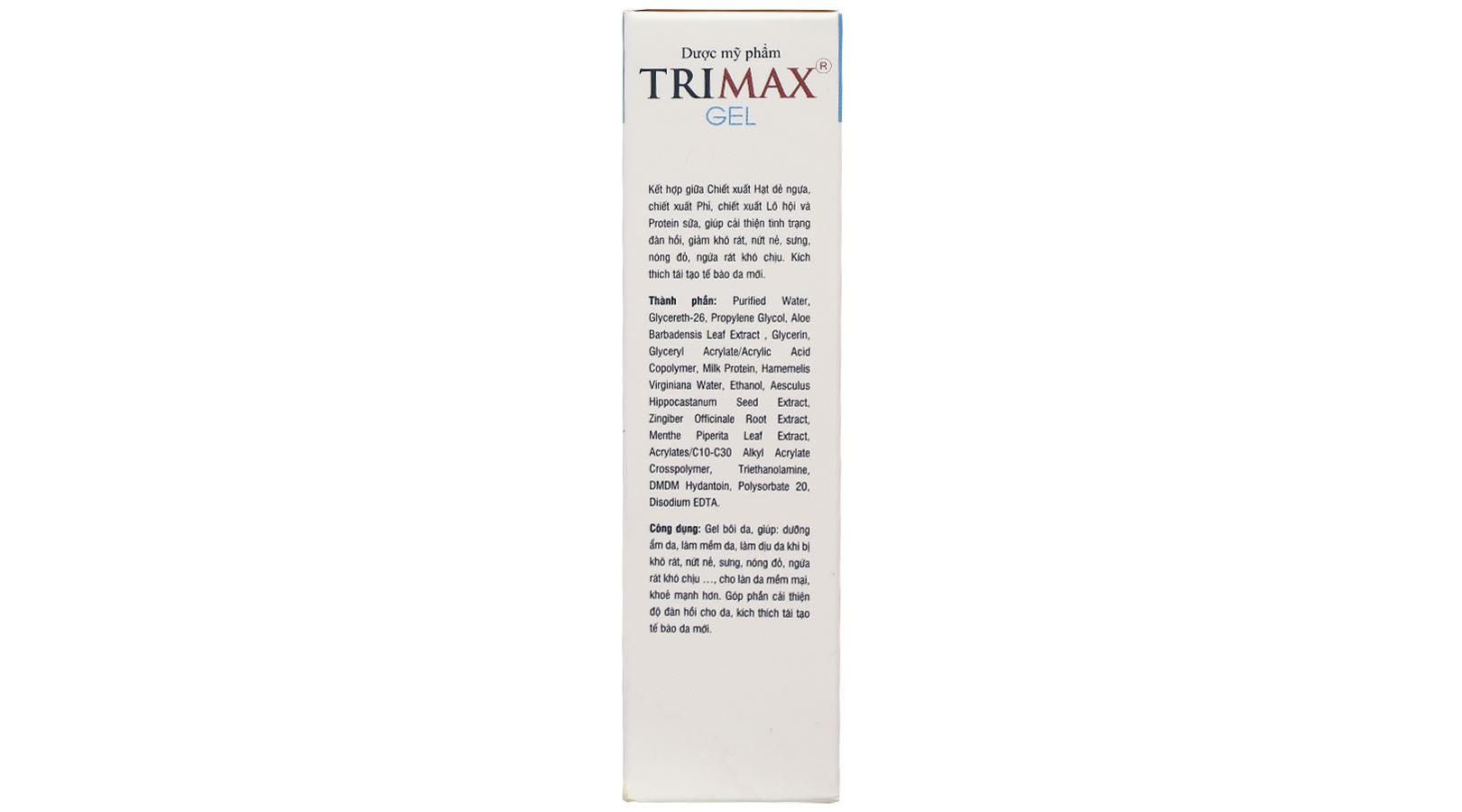 - Bệnh trĩ thường gây ra các vấn đề như sưng, nóng, đỏ, đau rát, ngứa ngáy và nứt nẻ vùng hậu môn, ảnh hưởng nghiêm trọng đến cuộc sống sinh hoạt và tâm lý của người bệnh. Gel Trimax được xem là giải pháp hoàn hảo để giảm thiểu các triệu chứng này: Giúp dưỡng ẩm cho da, làm mềm và làm dịu các vết nứt, vết sưng, nóng đỏ, và ngứa ngáy; đặc biệt, sản phẩm giúp kích thích quá trình tái tạo tế bào da mới, từ đó giúp da vùng hậu môn phục hồi nhanh chóng, trở nên mềm mại và khỏe mạnh hơn