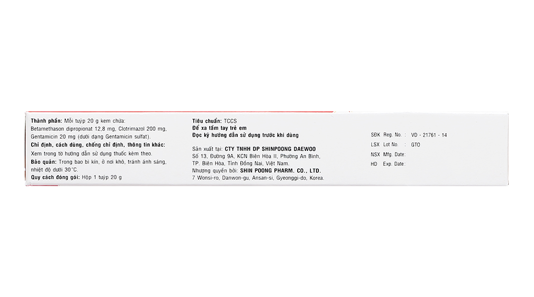 Hoạt chấtGentamicin sulfat, Clotrimazol, Betamethason dipropionat