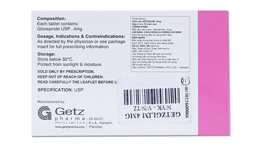 Getzglim 4mg trị đái tháo đường (2 vỉ x 10 viên)