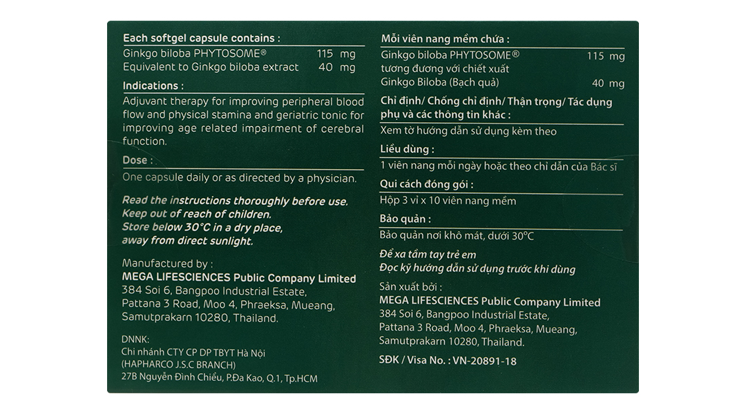 Công dụngĐiều trị suy tuần hoàn não, hỗ trợ trị di chứng tai biến, phòng bệnh Alzheimer’s