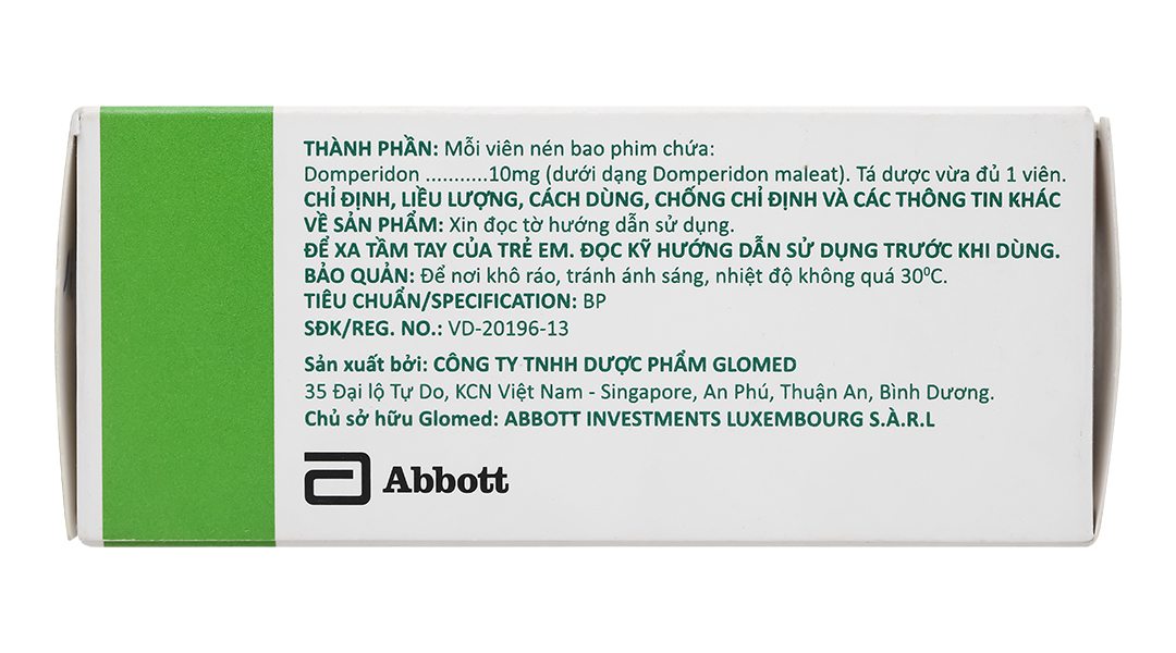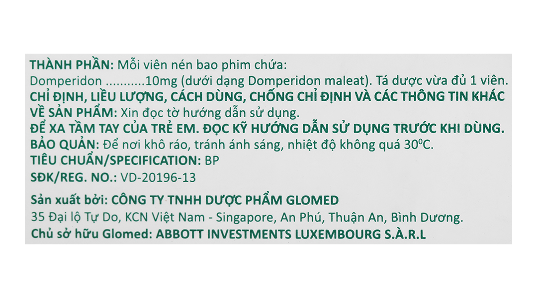 - Thành phần hoạt chất: Domperidon 10 mg (dưới dạng domperidon maleat).