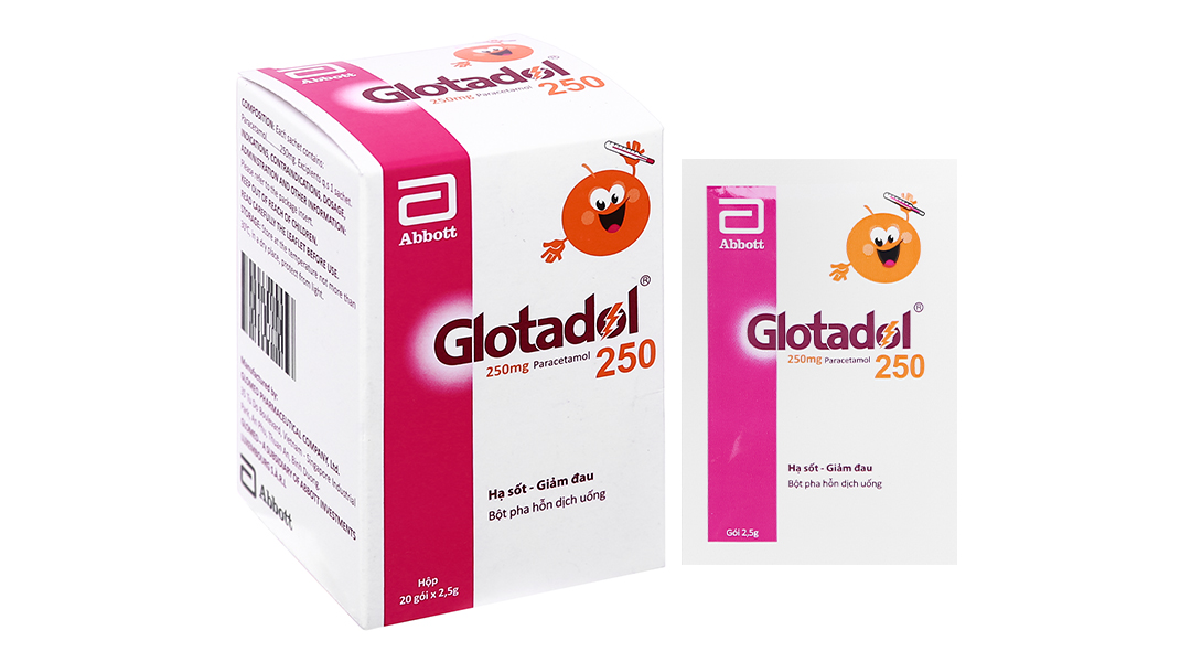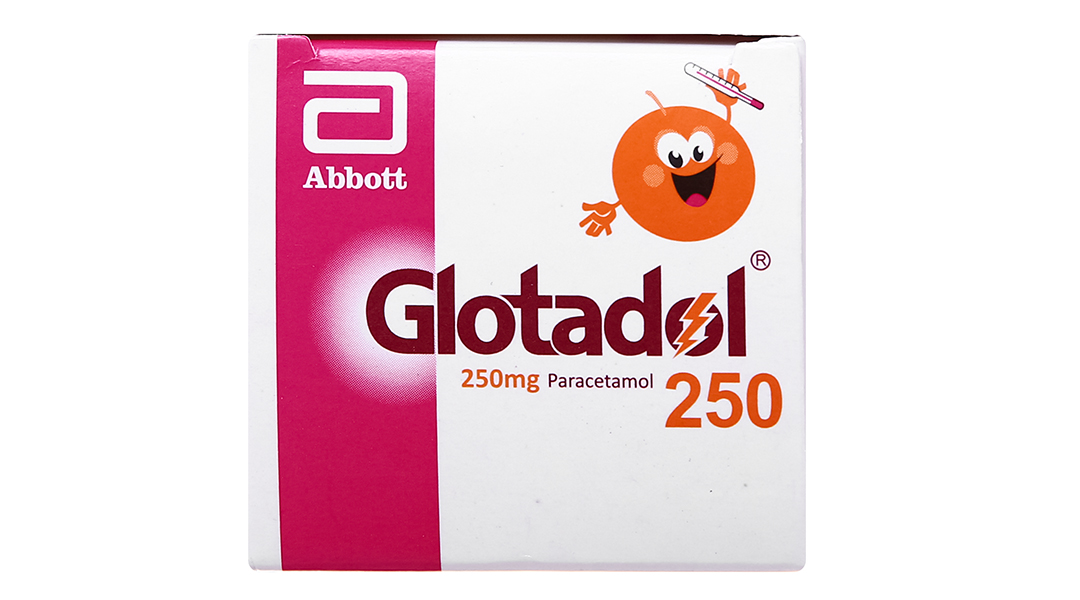 GLOTADOL 250 chứa paracetamol, 4′-hydroxyacetanilid, có dạng bột kết tinh màu trắng, không mùi, vị hơi đắng, là một thuốc hạ sốt, giảm đau non-opiat, non-salicylat. Paracetamol có công thức cấu tạo dưới đây: