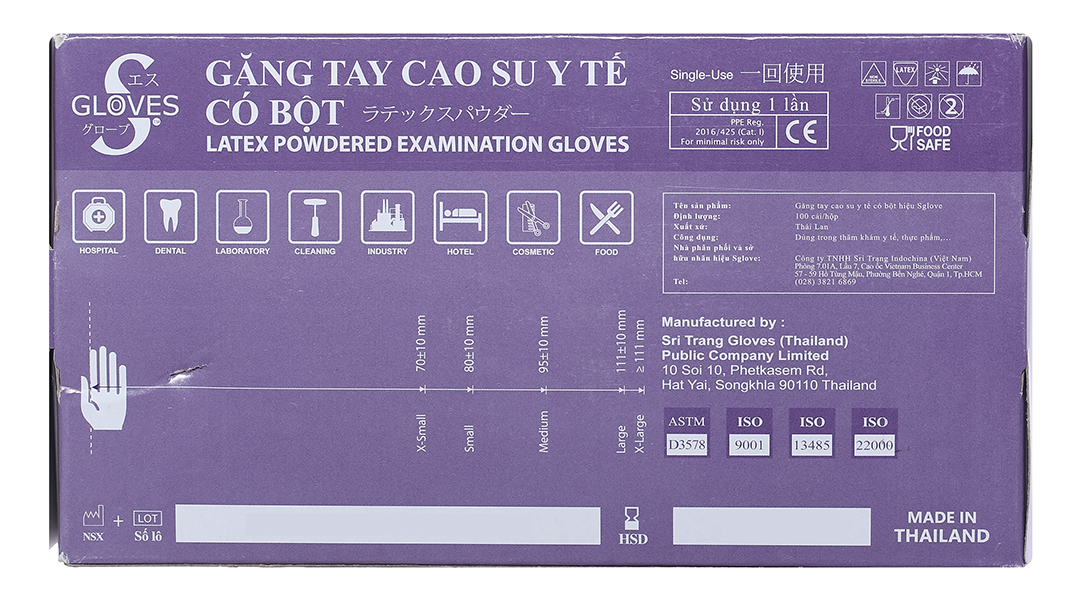 Găng tay y tế có bột Gloves S Latex Powdered Examination size S với công thức cải tiến hiệu quả. Găng tay được làm từ cao su thiên nhiên, có bột có thể thấm hút. Nhám đầu ngón tay giúp tăng cường độ bám ở các điểm tiếp xúc đầu ngón tay, thích hợp cho nha khoa, y tế và các ngành khác đòi hỏi sự bám cao ở đầu ngón tay hoặc tập trung vào công việc đòi hỏi sự tỉ mỉ cao cần độ bám dính với dụng cụ phù hợp cả ở điều kiện khô ráo và ướt, giúp cung cấp độ nhạy xúc giác, giảm chai tay, mang lại sự thoải mái cho bàn tay.