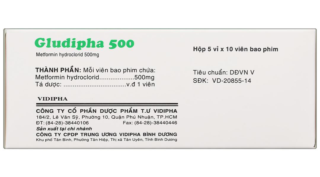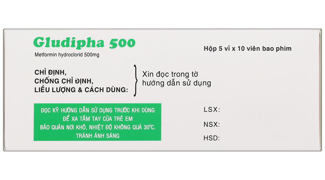 Gludipha 500 điều trị đái tháo đường tuýp 2 (5 vỉ x 10 viên)