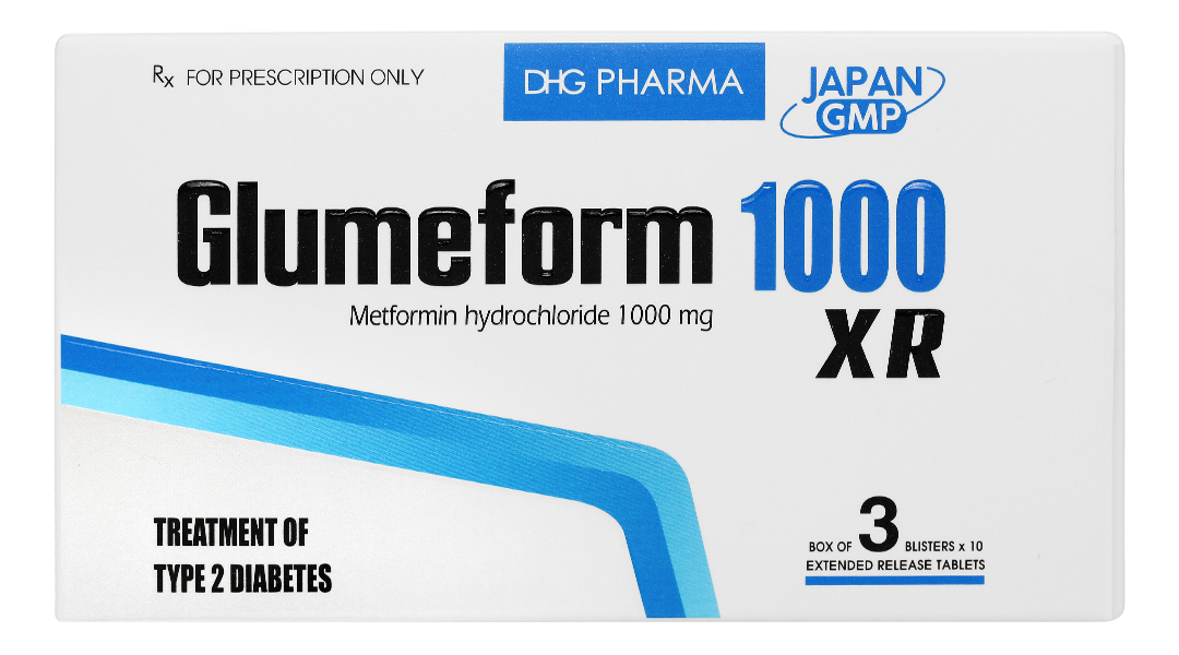 Glumeform 1000 XR là thuốc trị đái tháo đường với thành phần hoạt chất là metformin, thuộc nhóm biguanid. Metformin làm giảm nồng độ đường huyết cơ bản và sau khi ăn. Thuốc không gây kích thích tiết insulin, vì thế không gây hạ đường huyết. Metformin tác dụng qua 3 cơ chế: giảm sản xuất glucose ở gan bằng cách ức chế tân tạo đường và phân hủy glycogen; tại cơ, gia tăng sự nhạy cảm của insulin, cải thiện việc sử dụng glucose ở ngoại biên; làm chậm hấp thu glucose ở ruột.