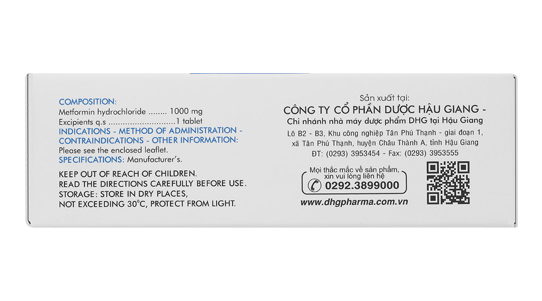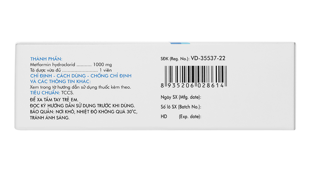 Thành phần hoạt chất: Metformin hydroclorid 1000mg
