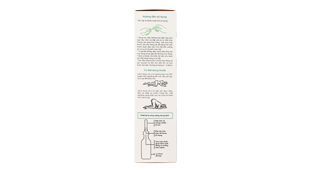 - – Rút đầu ống thuốc ra khỏi trực tràng và giữ nguyên tư thế cho đến khi có cơn buồn đại tiện (thường khoảng 2 – 5 phút).