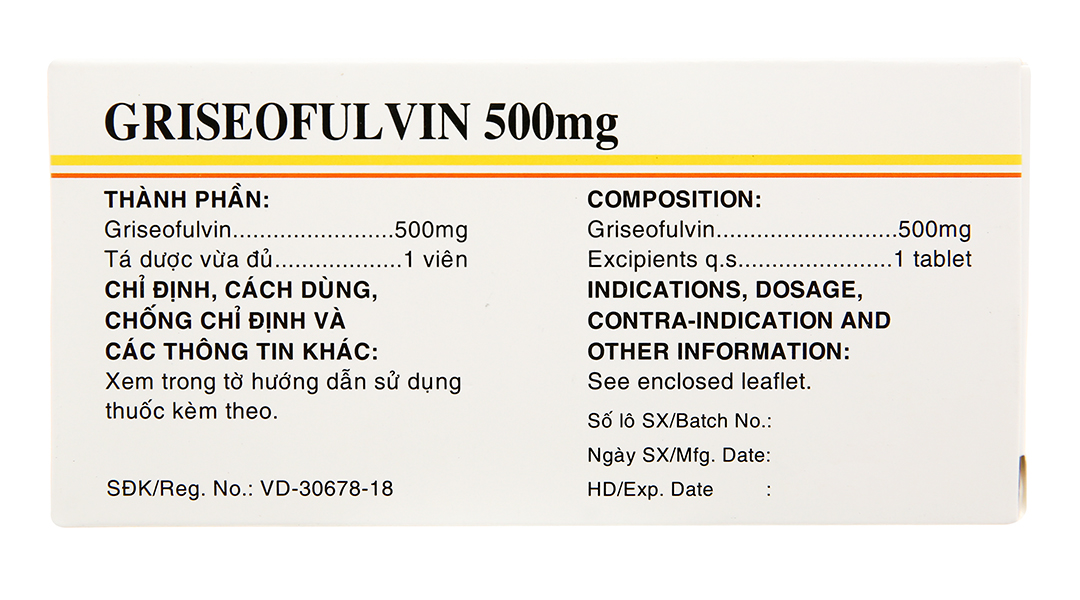 – Cần lưu ý phụ nữ không nên có thai trong vòng 1 tháng sau khi ngừng sử dụng thuốc có chứa griseofulvin.