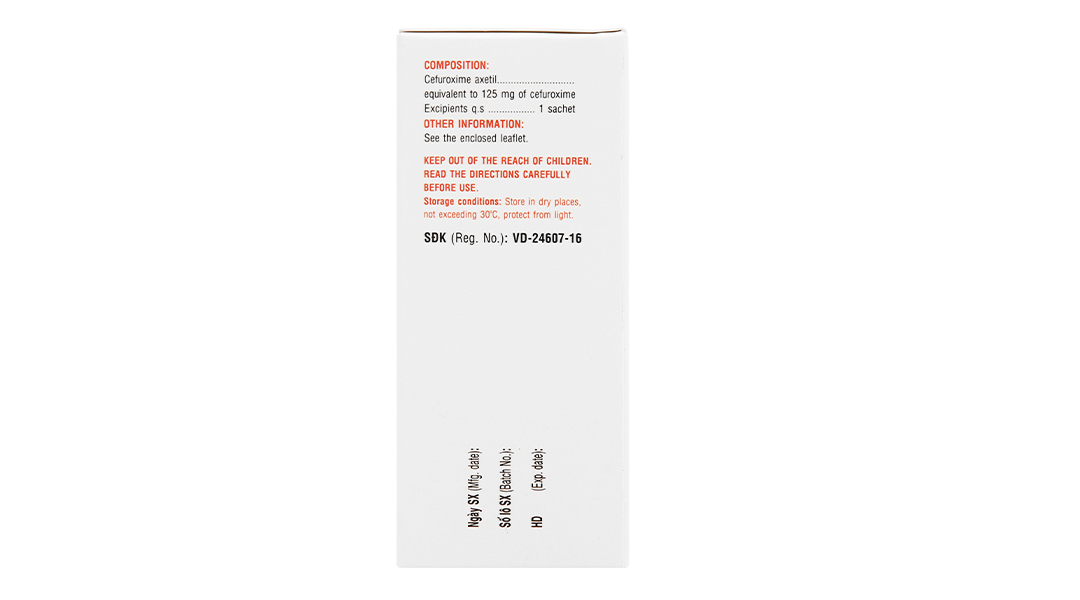 Hoạt chất: Cefuroxim axetil tương đương 125mg cefuroxim.