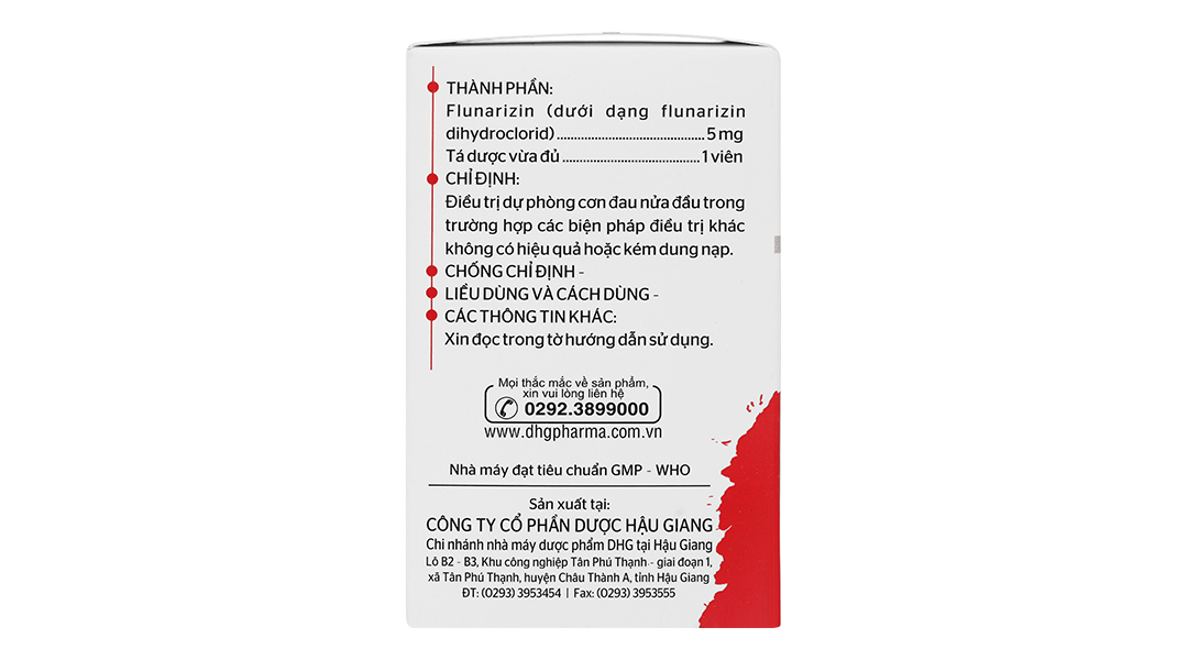 Flunarizin (dưới dạng flunarizin dihydroclorid) 5mg.