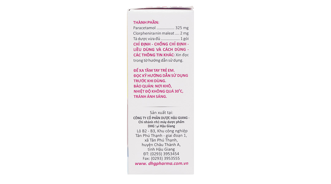 Đối với người bị phenylceton – niệu và người phải hạn chế lượng phenylalanin đưa vào cơ thể nên tránh dùng paracetamol với thuốc hoặc thực phẩm có chứa aspartam. Đối với một số người quá mẫn (bệnh hen) nên tránh dùng paracetamol với thuốc hoặc thực phẩm có chứa sulfit. Phải dùng thận trọng ở người bệnh có thiếu máu từ trước, suy giảm chức năng gan và thận. Uống nhiều rượu có thể gây tăng độc tính với gan của paracetamol, nên tránh hoặc hạn chế uống rượu. Trong Clorpheniramin có thể làm tăng nguy cơ bí tiểu tiện, đặc biệt ở người bị phì đại tuyến tiền liệt, tắc đường niệu, tắc môn vị tá tràng, và làm trầm trọng thêm ở người bệnh nhược cơ. Tác dụng an thần của clorpheniramin tăng lên khi uống rượu và khi dùng đồng thời với các thuốc an thần khác. Thận trọng khi dùng cho người có bệnh phổi mạn tính, thở ngắn hoặc khó thở, người bị tăng nhãn áp, người cao tuổi. Nguy cơ gây sâu răng khi sử dụng trong thời gian dài.