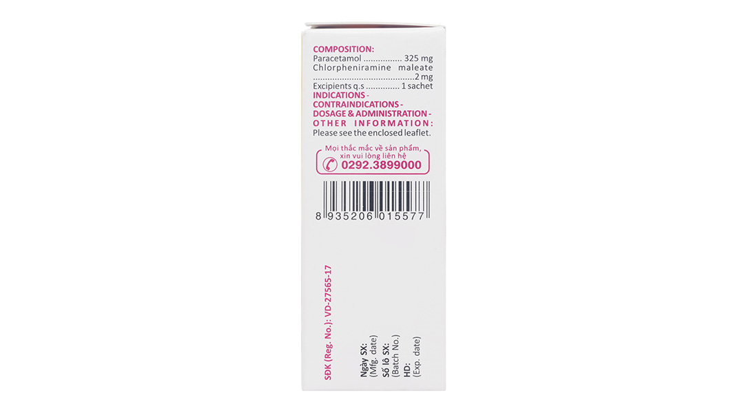 Dùng điều trị các triệu chứng cảm sốt như: sốt, nhức đầu, sổ mũi, chảy nước mũi, đau nhức nhẹ kèm theo.