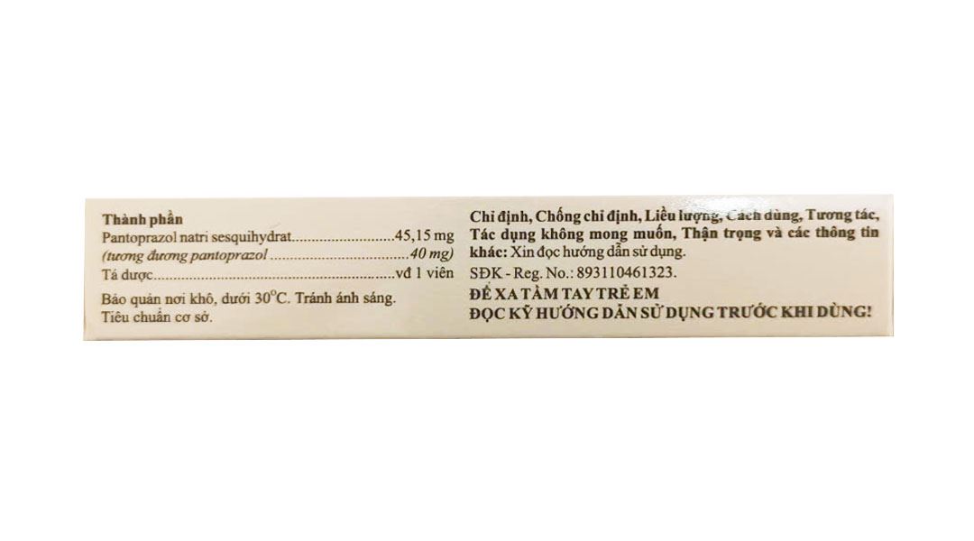 - Hoạt chất: 45,12 mg Pantoprazol natri sesquihydrat (tương đương với 40 mg Pantoprazol).
