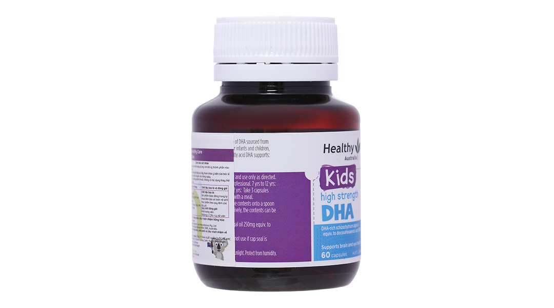 Healthy Care Kids High Strength DHA chứa thành phần DHA có nguồn gốc từ tảo, công thức bào chế đặc biệt bảo đảm hàm lượng DHA đạt chuẩn, giúp bé hấp thụ tốt hơn. Đây là sản phẩm vừa hỗ trợ sức khỏe và chức năng của não, giúp duy trì sự tăng trưởng và phát triển lành mạnh cho trẻ sơ sinh và trẻ nhỏ có chế độ ăn uống không đầy đủ; đồng thời cũng có tác dụng hỗ trợ giúp chức năng mắt khỏe mạnh.