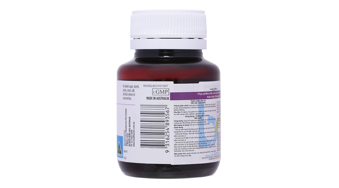 Healthy Care Kids High Strength DHA được nghiên cứu bởi Healthy Care – một trong những thương hiệu chăm sóc sức khỏe tự nhiên hàng đầu của Úc, trực thuộc Công ty Nature’s Care với lịch sử phát triển lâu đời. Với biểu tượng là mầm cây xanh, Healthy Care cam kết bổ trợ và chăm sóc sức khỏe con người bằng cách sử dụng nguyên liệu tự nhiên, các sản phẩm của thương hiệu được nghiên cứu kỹ lưỡng bởi chuyên gia chăm sóc sức khỏe và làm từ nguyên liệu tự nhiên, không chất độc hại hay biến đổi gen. Trước khi đến được người tiêu dùng, các sản phẩm Healthy Care phải trải qua hơn 20 lần kiểm tra chất lượng và đều phải phù hợp với tiêu chuẩn cGMP và TGA – những tiêu chuẩn sản xuất và chất lượng nghiêm ngặt nhất thế giới dưới sự kiểm soát của Chính phủ Úc.