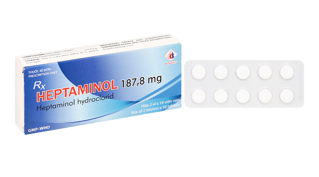 Mô tả đặc điểm bên ngoài của thuốc: Viên nén hình tròn, màu trắng, một mặt viên có khắc chữ “HEPTAMINOL, cạnh và thành viên lành lặn.