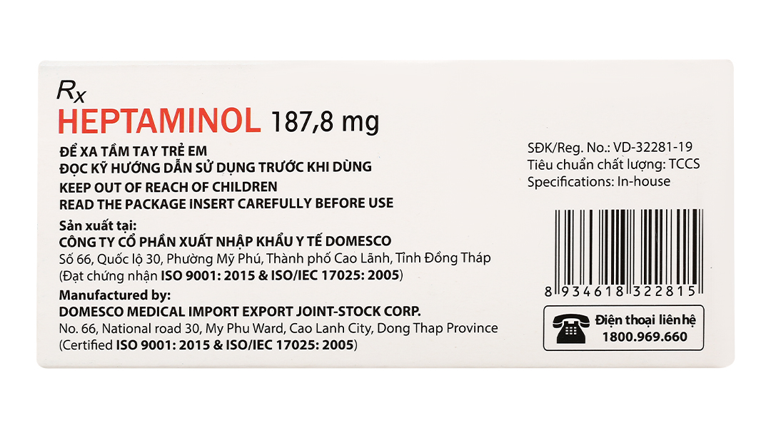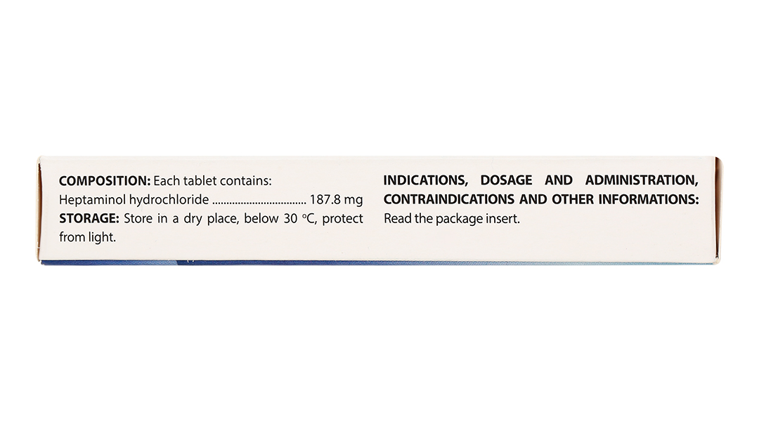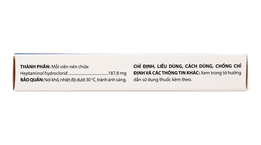 Thành phần dược chất: Heptaminol hydroclorid: 187,8mg.