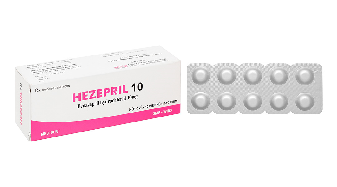 Hezepril 10 trị tăng huyết áp, suy tim sung huyết (6 vỉ x 10 viên)