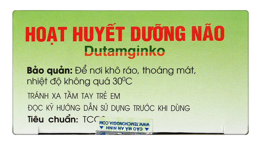 - Cao khô lá Bạch quả (Extractum Folium Ginkgo siccus) 5mg (tương đương flavonoid ≥ 1,2mg).