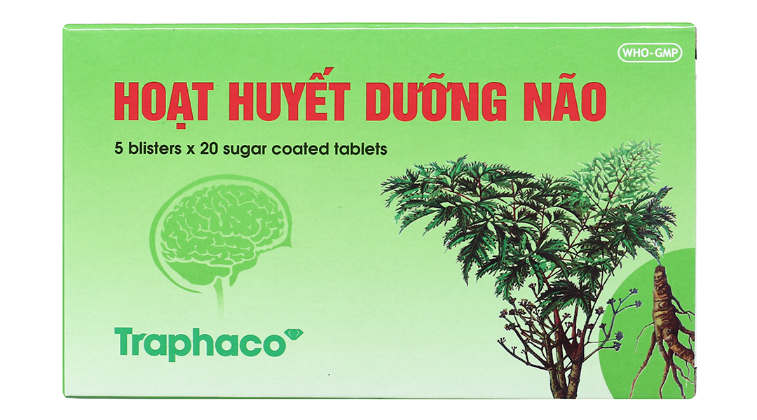Viên bao đường Hoạt Huyết Dưỡng Não Traphaco giúp cải thiện trí nhớ (5 vỉ x 20 viên)