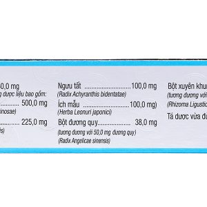 - Cao đặc ĺch mẫu 10:1 (Extractum herba leonuri japonici) 3g (tương đương với 30g dược liệu).