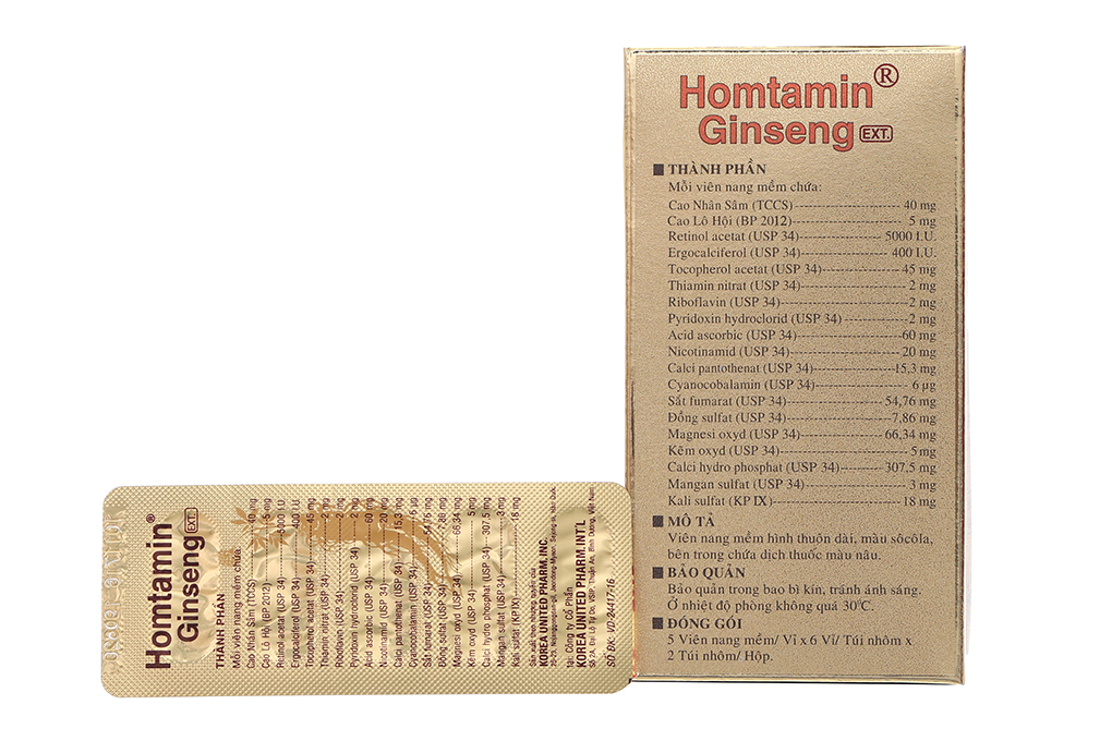 Mỗi viên nang mềm Homtamin Ginseng chứa: