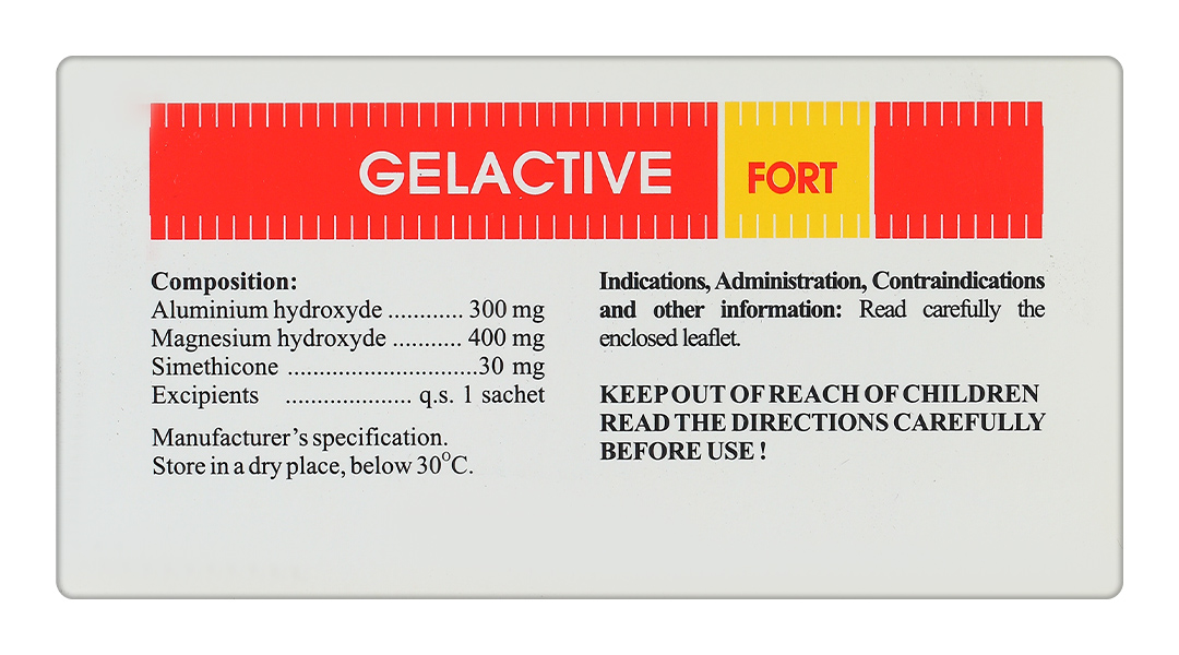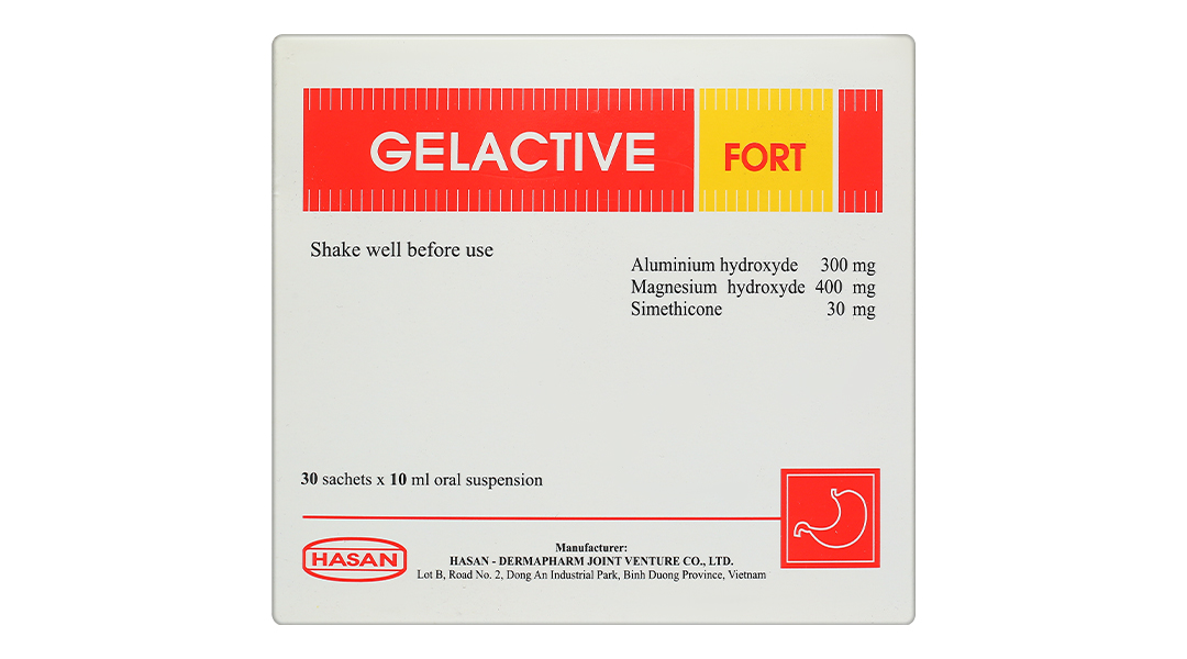 GELACTIVE FORT là một hỗn hợp cân bằng của hai thuốc kháng acid và chất chống đầy hơi simethicon.