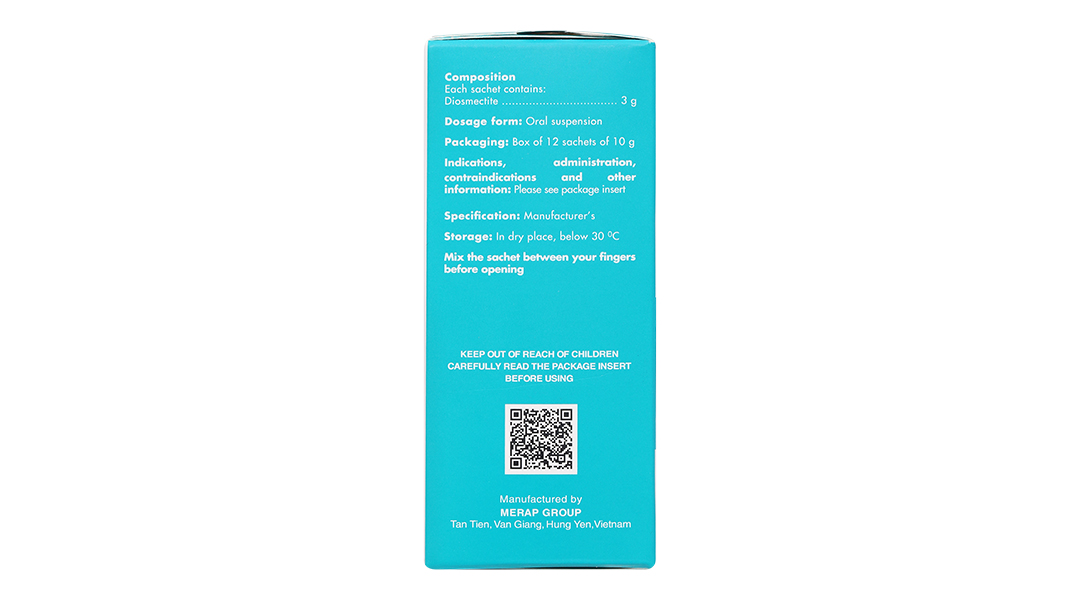 - Thành phần dược chất: Mỗi gói chứa Diosmectite 3g.