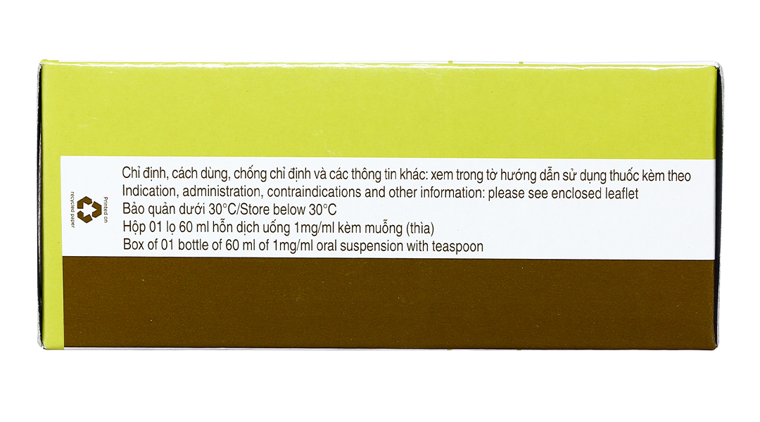 Người lớn và trẻ vị thành niên (từ 12 tuổi trở lên và cân nặng từ 35 kg trở lên)10mL (của hỗn dịch uống 1 mg/mL) lên đến 3 lần 1 ngày với liều tối đa là 30 mL/ngày.