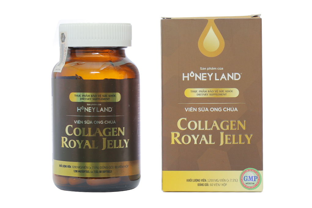 Viên uống Collagen Royal Jelly HoneyLand là thực phẩm chức năng chăm sóc da chuyên sâu. Với thành phần chính được chiết xuất từ sữa ong chúa, collagen cùng nhiều thành phần khác. Dạng viên nang có mùi thơm nhẹ dễ chịu, không có vị quá ngọt. Viên uống được mệnh danh là một trông những bí quyết làm đẹp hoàn hảo cho nhiều chị em. Chăm sóc và bảo vệ da một cách hoàn hảo mang đến cho bạn làn da mượt mà.