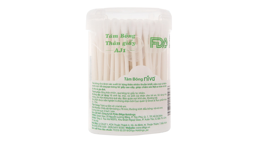 Tăm bông ráy tai Niva AJ1 thân giấy đầu tròn và xoắn hũ 100 que