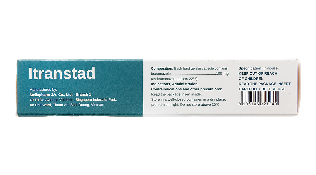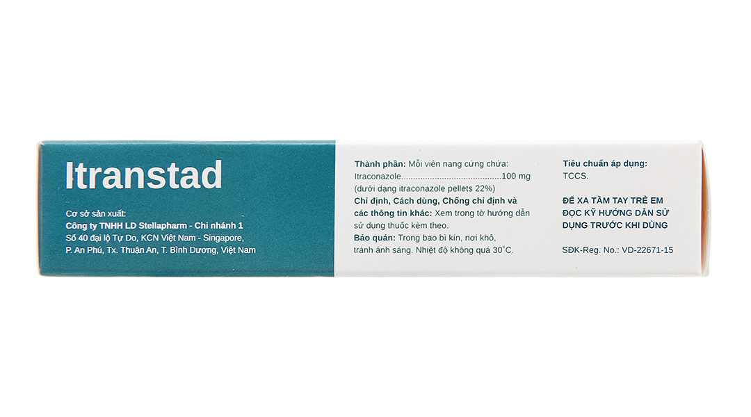 Itranstad 100mg trị nhiễm nấm Candida (1 vỉ x 6 viên)