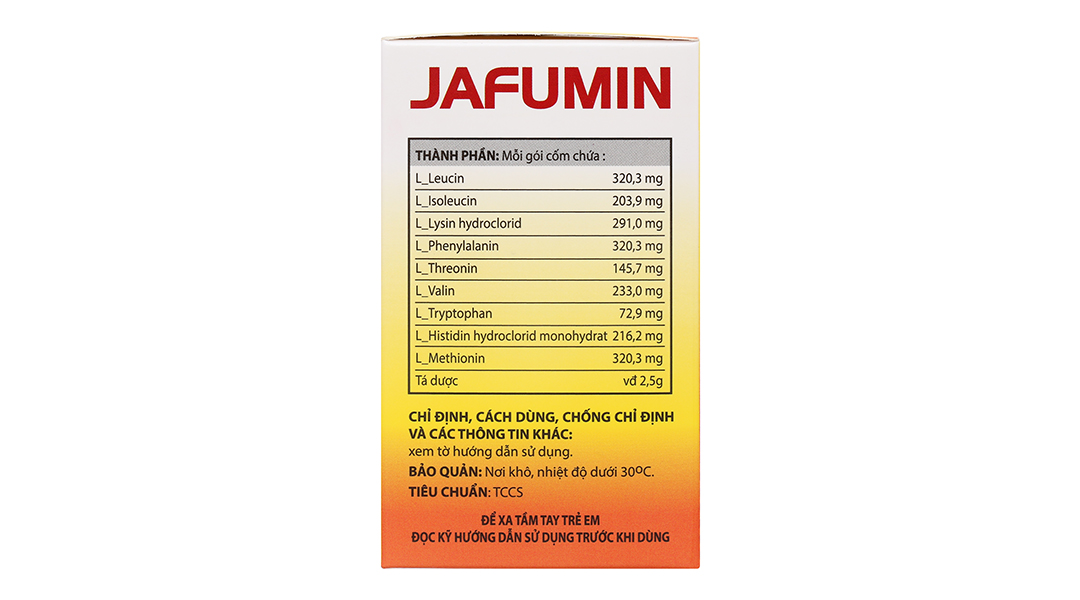 Hấp thu: Khi Jafumin được dùng đường uống, mỗi acid amin được hấp thu qua chất vận chuyển của nó ở ruột non.