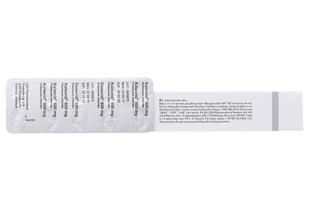 Hoạt chất: Mỗi viên chứa Kali clorid 600mg.