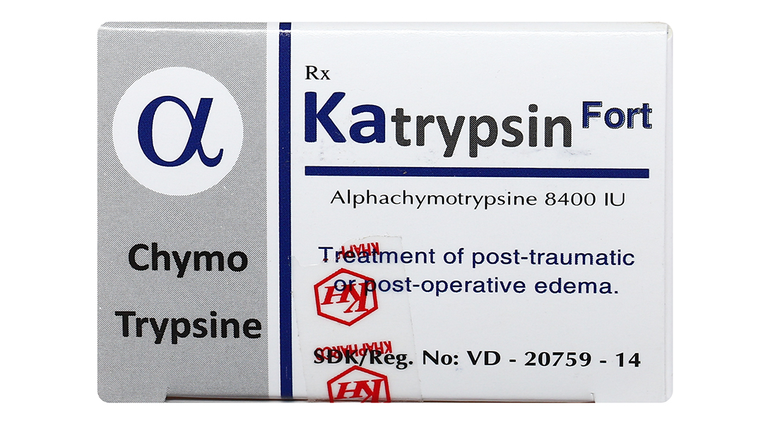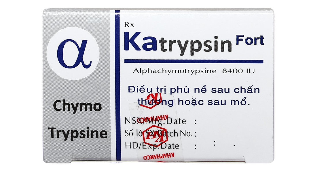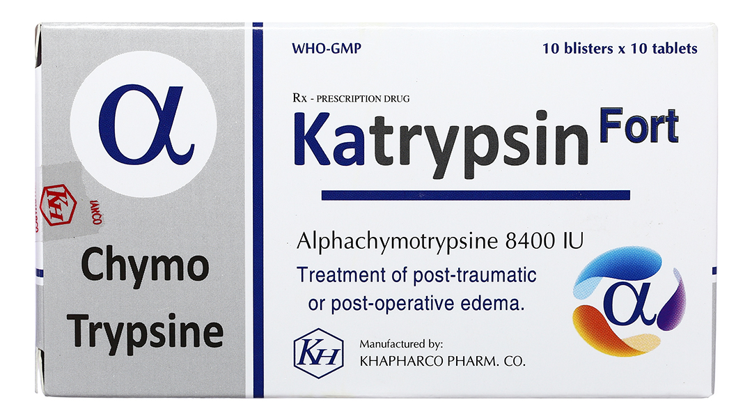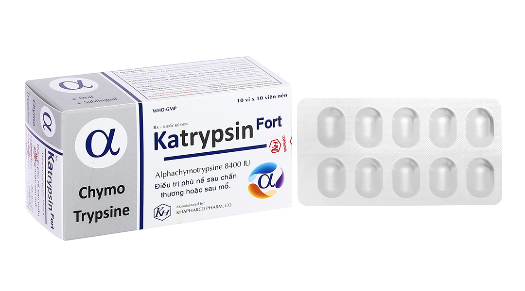 Katrypsin Fort 8400IU trị phù nề sau chấn thương, phẩu thuật, bỏng (10 vỉ x 10 viên)