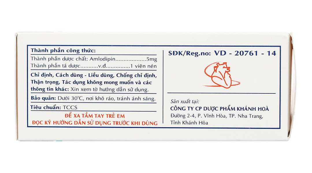 Thành phần dược chất: Amlodipin 5mg (dưới dạng amlodipin besilat 6,935mg).