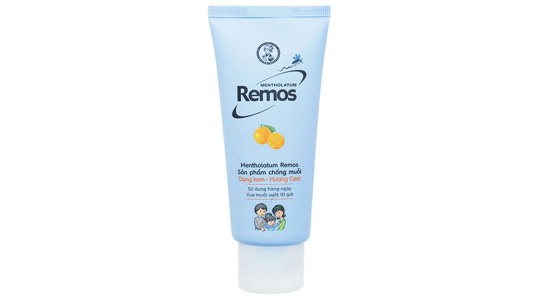 Kem xịt côn trùng, đuổi côn trùng Remos là sản phẩm kem xịt côn trùng được sử dụng phổ biến cho cả trẻ em và người lớn. Kem chống muỗi Remos hương cam 70g duy trì hiệu quả chống muỗi đến 10 giờ. Ngoài ra còn giúp giữ ẩm, dưỡng da, cho làn da mềm mại, mịn màng hơn.